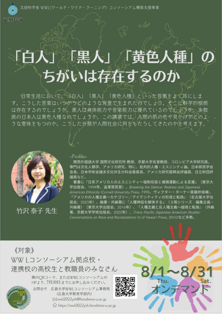 竹沢泰子先生(関西外国語大学 国際文化研究所 教授、京都大学名誉教授、コロンビア大学研究員)