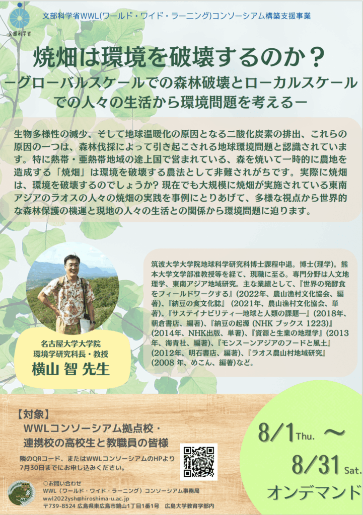焼畑は環境を破壊するのか?–グローバルスケールでの森林破壊とローカルスケールでの人々の生活から環境問題を考える–【オンデマンド配信】