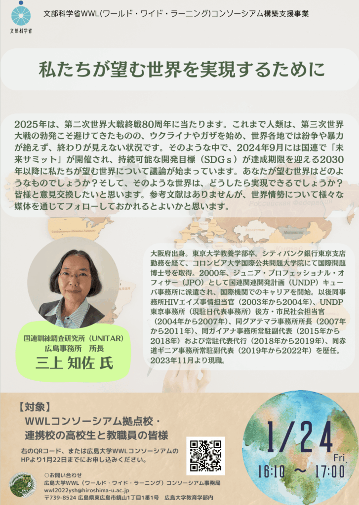 三上 知佐先生(国連訓練調査研究所(ユニタール)広島事務所長)