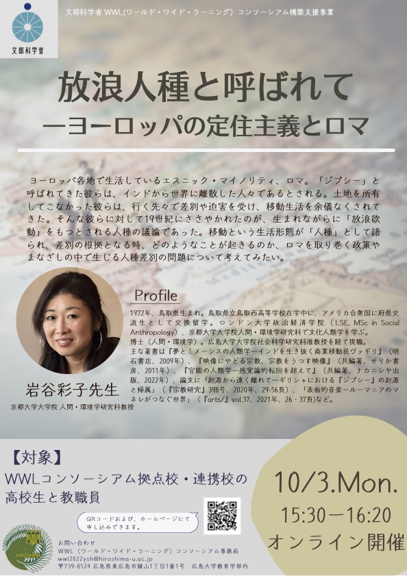 講師:岩谷彩子先生(京都大学大学院 人間・環境学研究科教授)