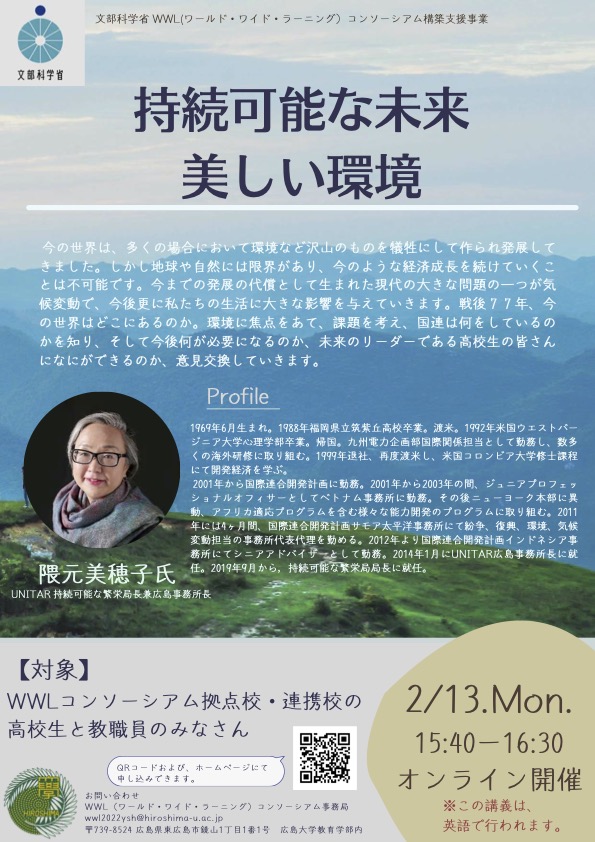 講師:隅元美穂子氏(UNITAR 持続可能な繁栄局⻑兼広島事務所⻑)